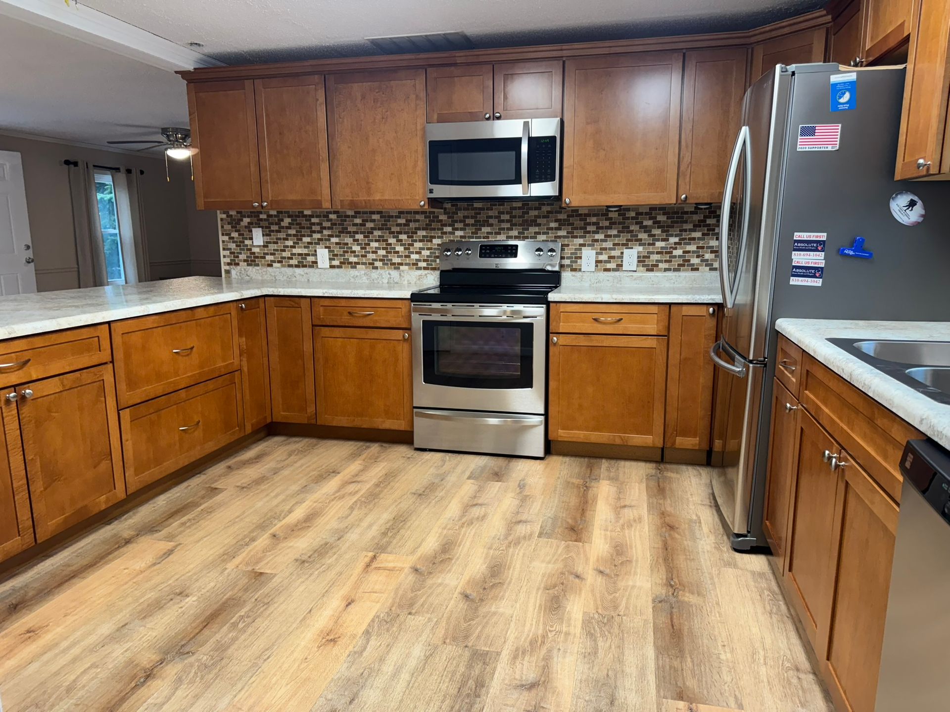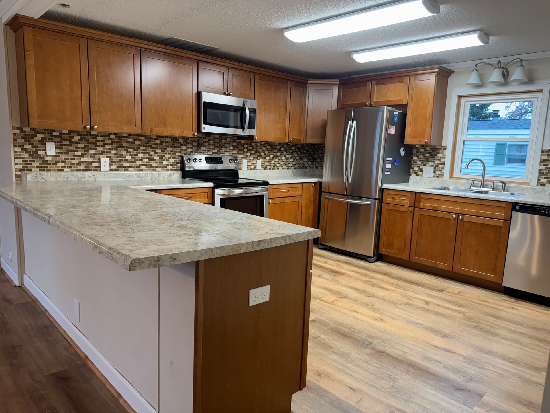 This 2 bedroom, 2 bath home offers updates galore! All since 2018 - kitchen remodel, windows, roof, flooring throughout, exterior storm doors, toilets, washer, dryer, and kitchen appliances. Attached 2 car garage. All appliances included.