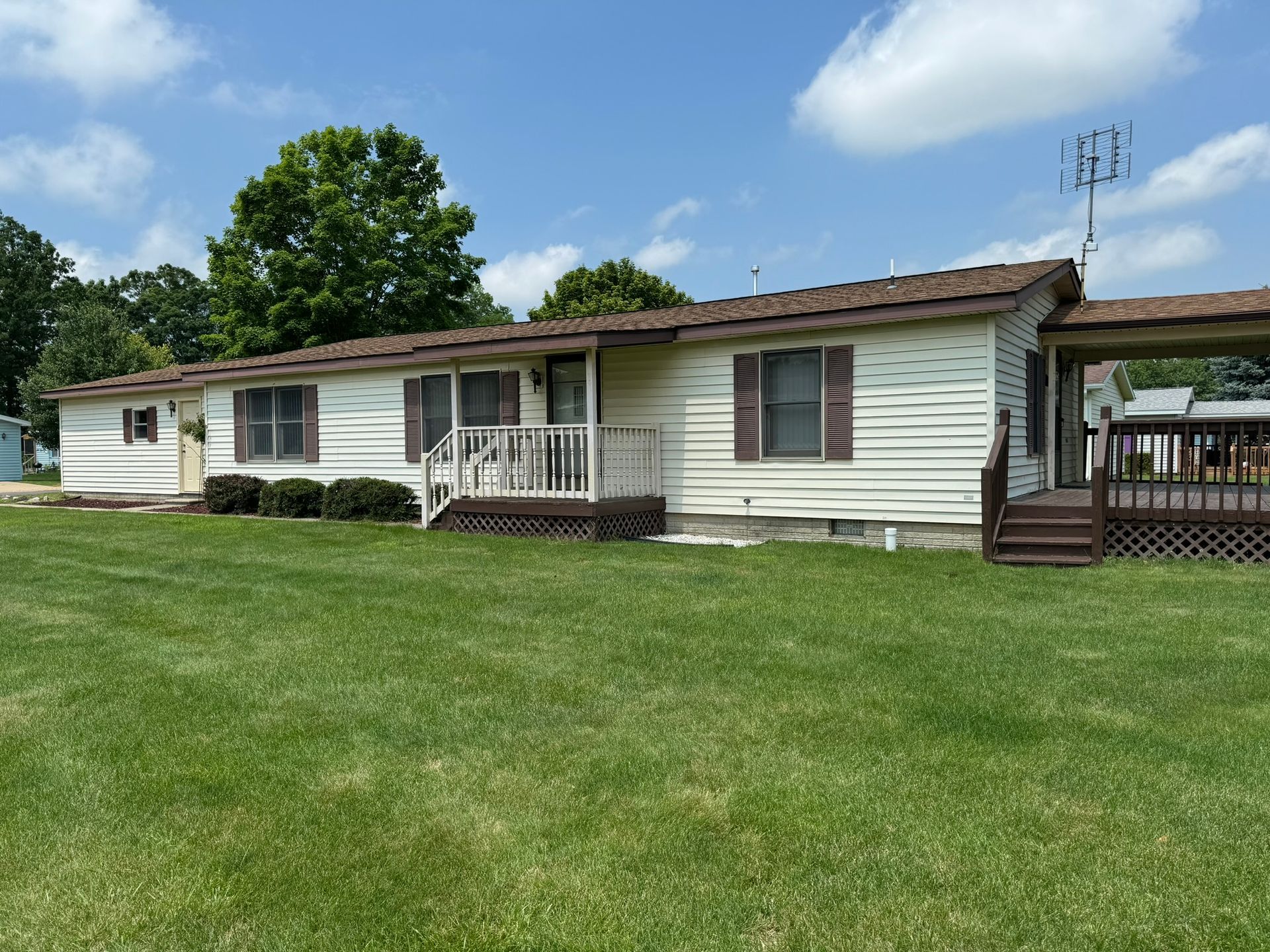 This 3 bedroom, 2 bath home is conveniently located near our main clubhouse, pavilion, shuffleboard court, mail room and office. Would make a great choice for those with restricted driving! Lots of updates within the last year including a kitchen refresh, landscaping, blinds throughout, storm door and more. Water softener, R/O, roof, hot water tank and furnace have been replaced. Large partially covered deck in the back of the home offers excellent outdoor entertaining! Attached 2 car garage. All appliances included.