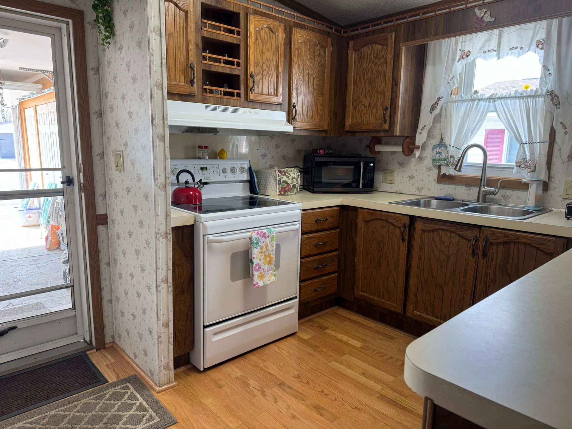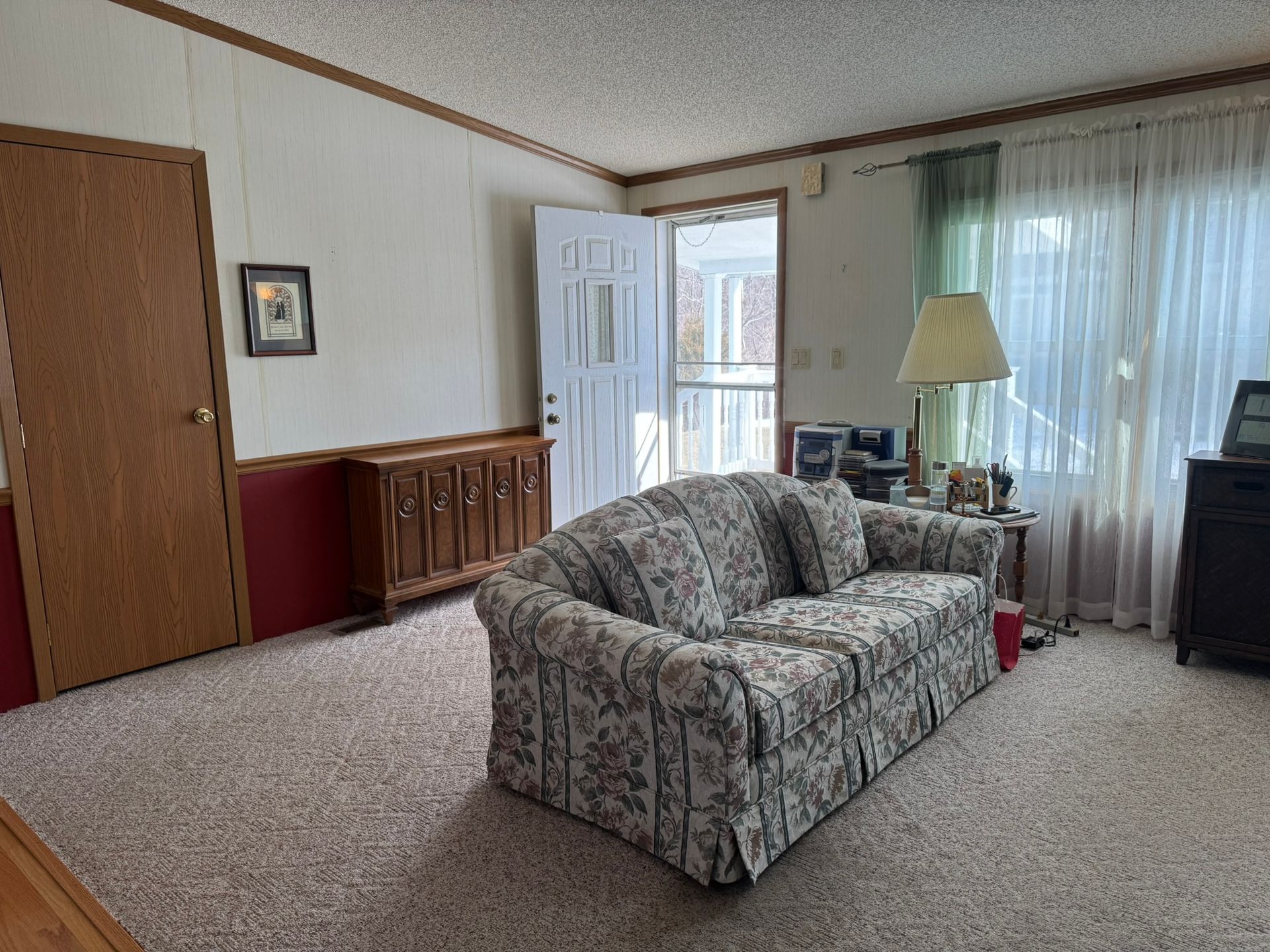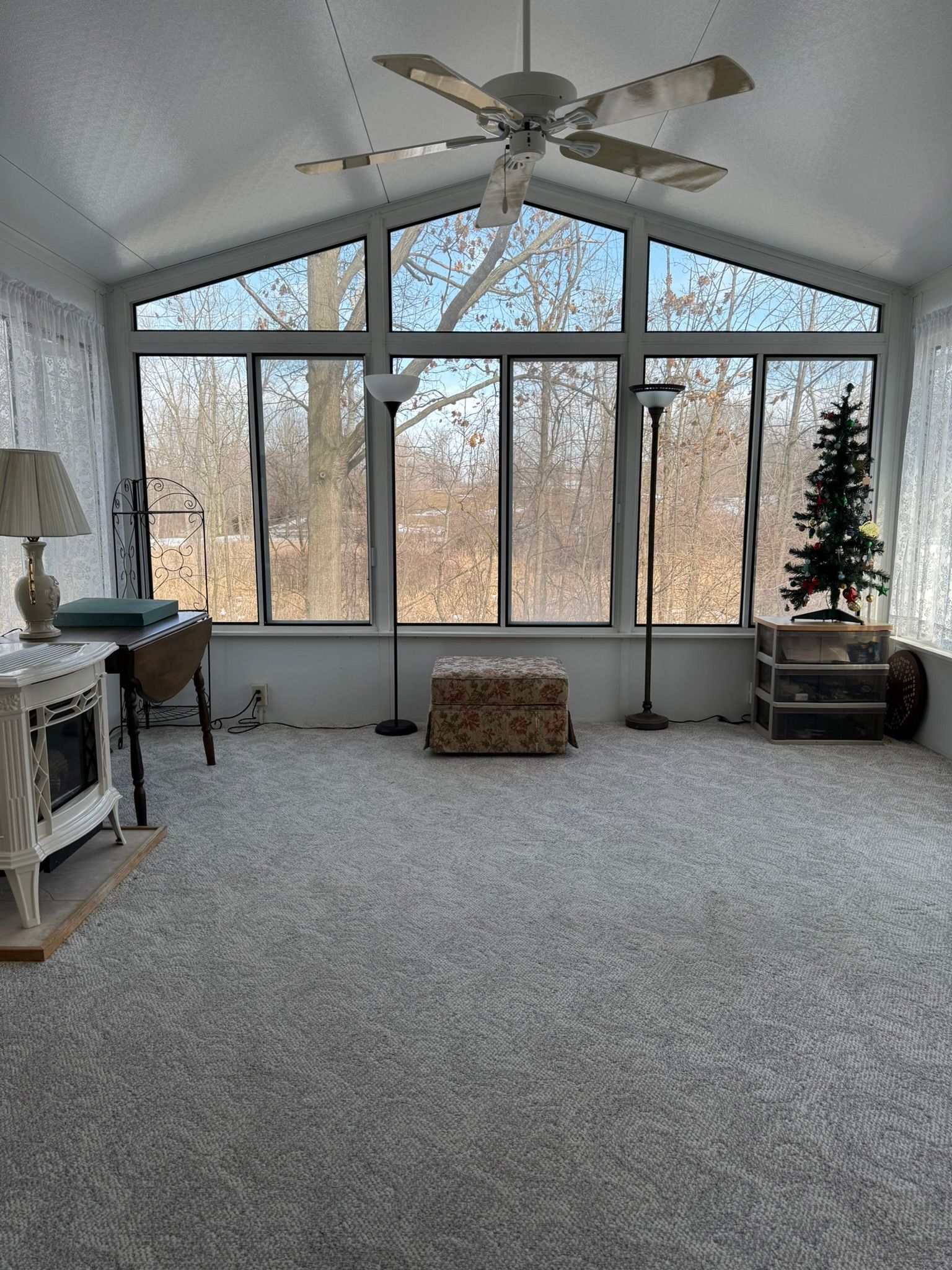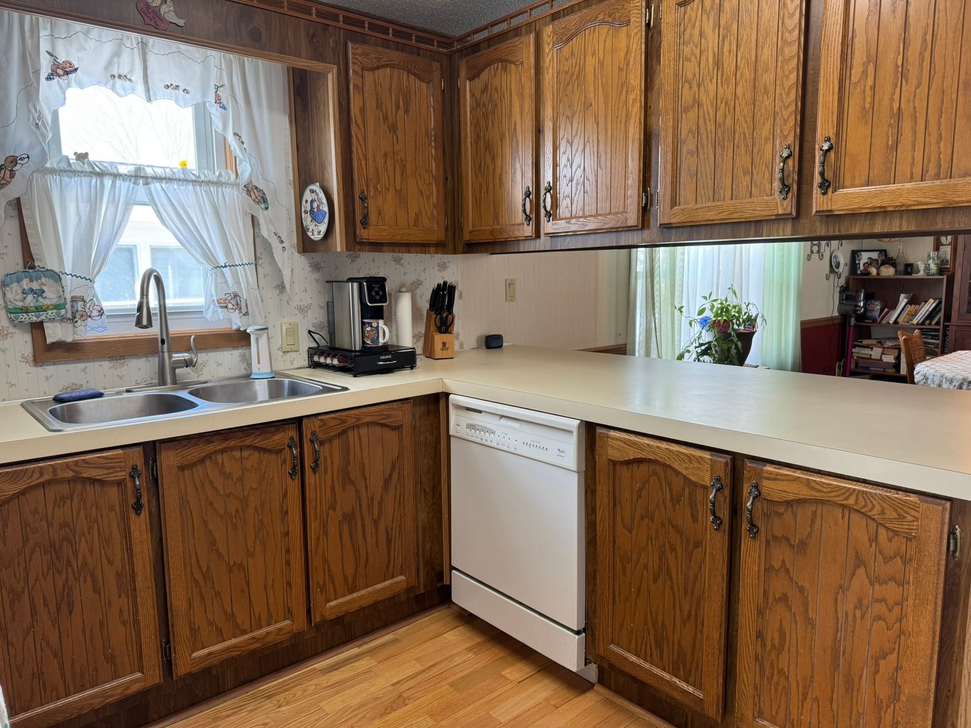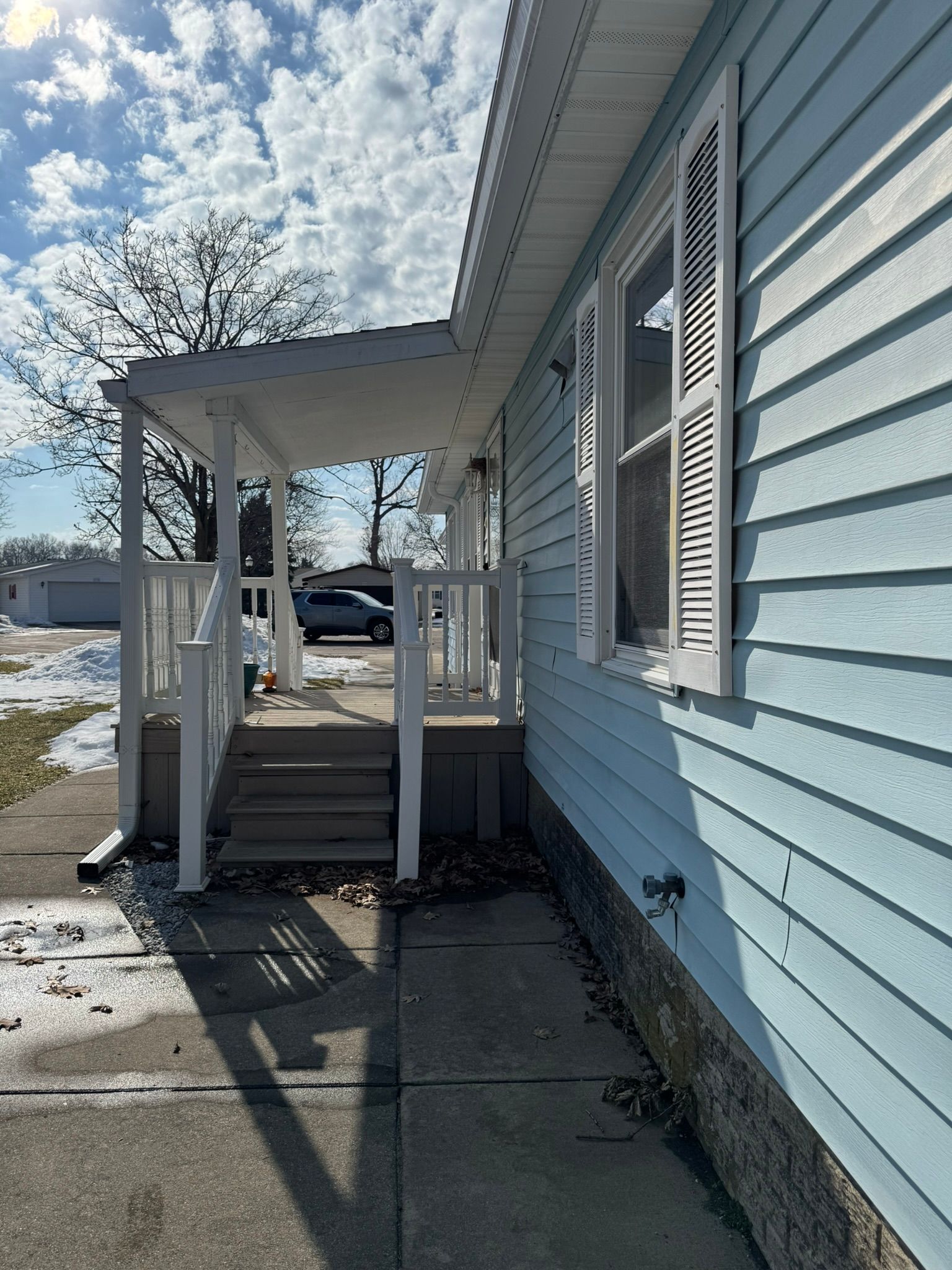 This home features a pretty sunroom with gas stove, composite deck and covered front porch with vinyl rail. Inside you will find a new (2023) walk-in shower in the large primary bedroom and walk-in closet. Dedicated laundry room with newer (2021) washer and dryer. Good sized kitchen with lots of cabinets and dishwasher. Laminate wood flooring in kitchen, dining and hallway. Brand new (2026) garage door is a plus! Garage also features tons of storage closets. Roof replaced in 2008.