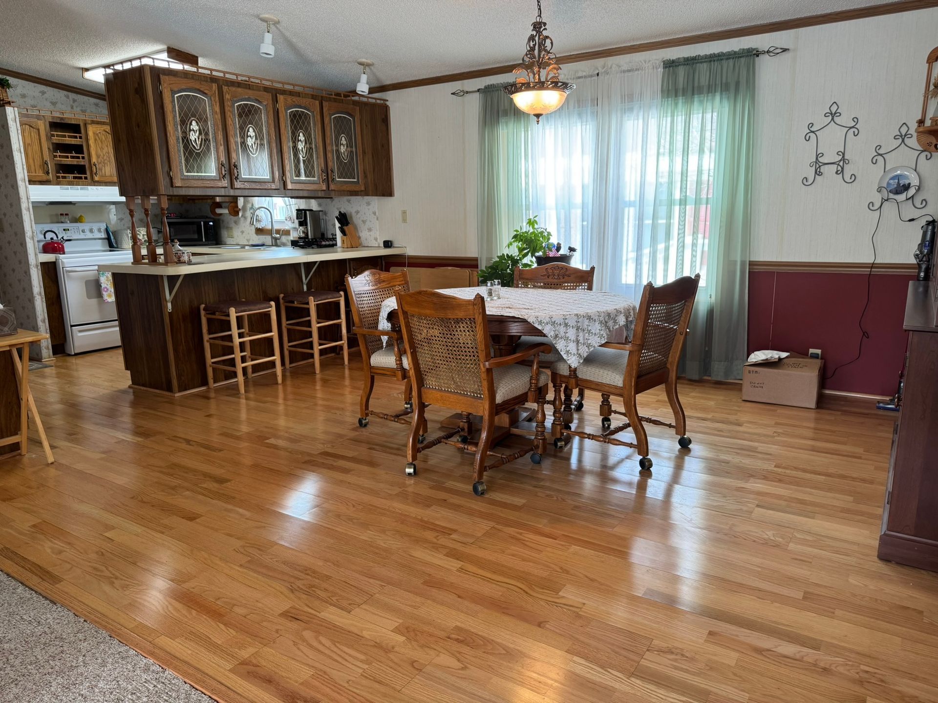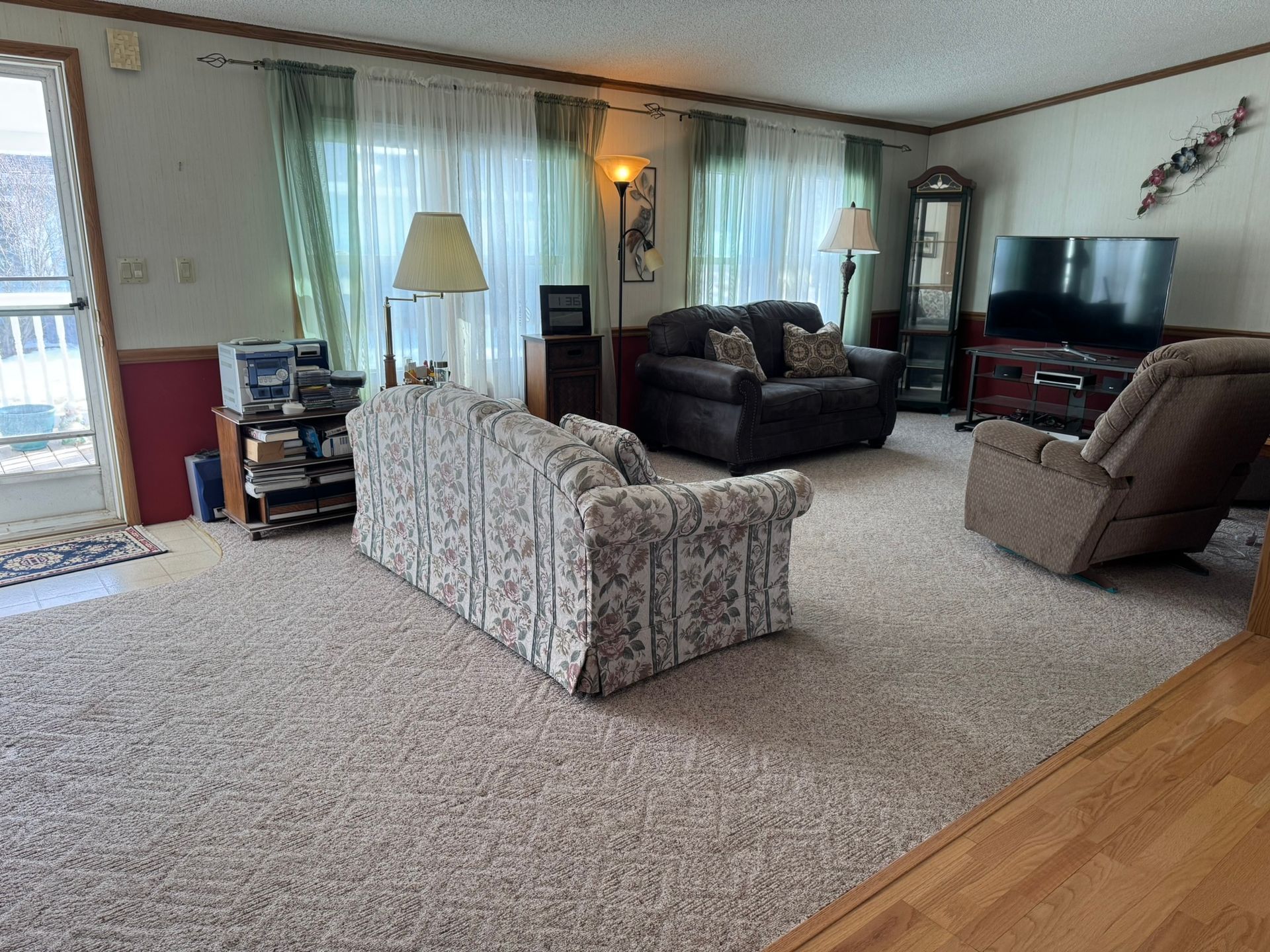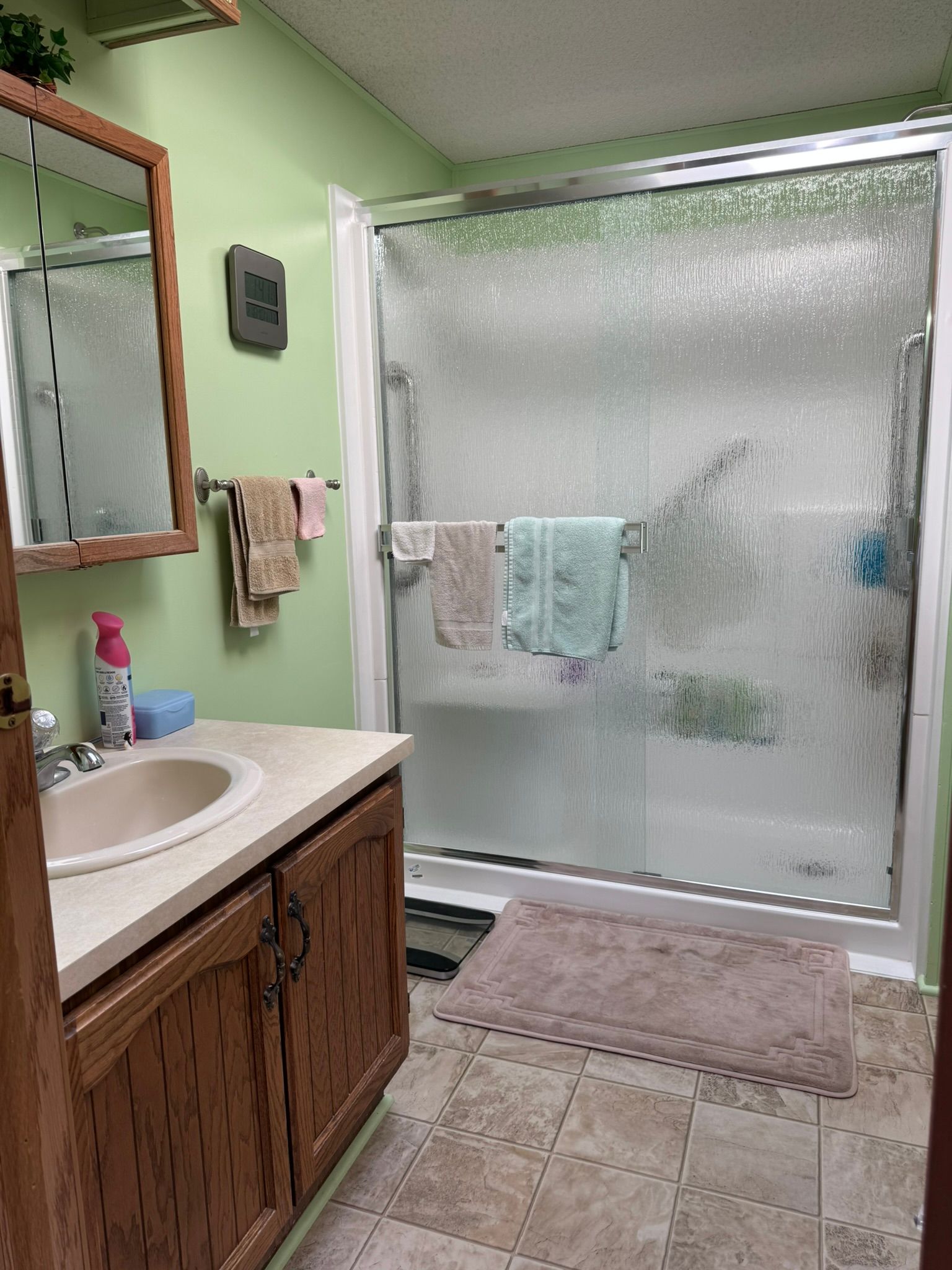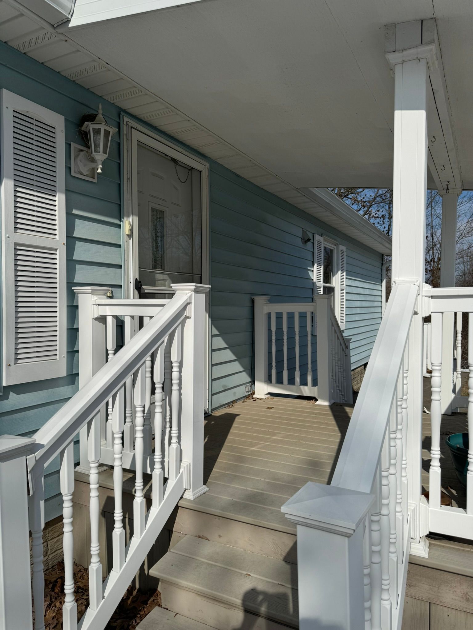 This home features a pretty sunroom with gas stove, composite deck and covered front porch with vinyl rail. Inside you will find a new (2023) walk-in shower in the large primary bedroom and walk-in closet. Dedicated laundry room with newer (2021) washer and dryer. Good sized kitchen with lots of cabinets and dishwasher. Laminate wood flooring in kitchen, dining and hallway. Brand new (2026) garage door is a plus! Garage also features tons of storage closets. Roof replaced in 2008.